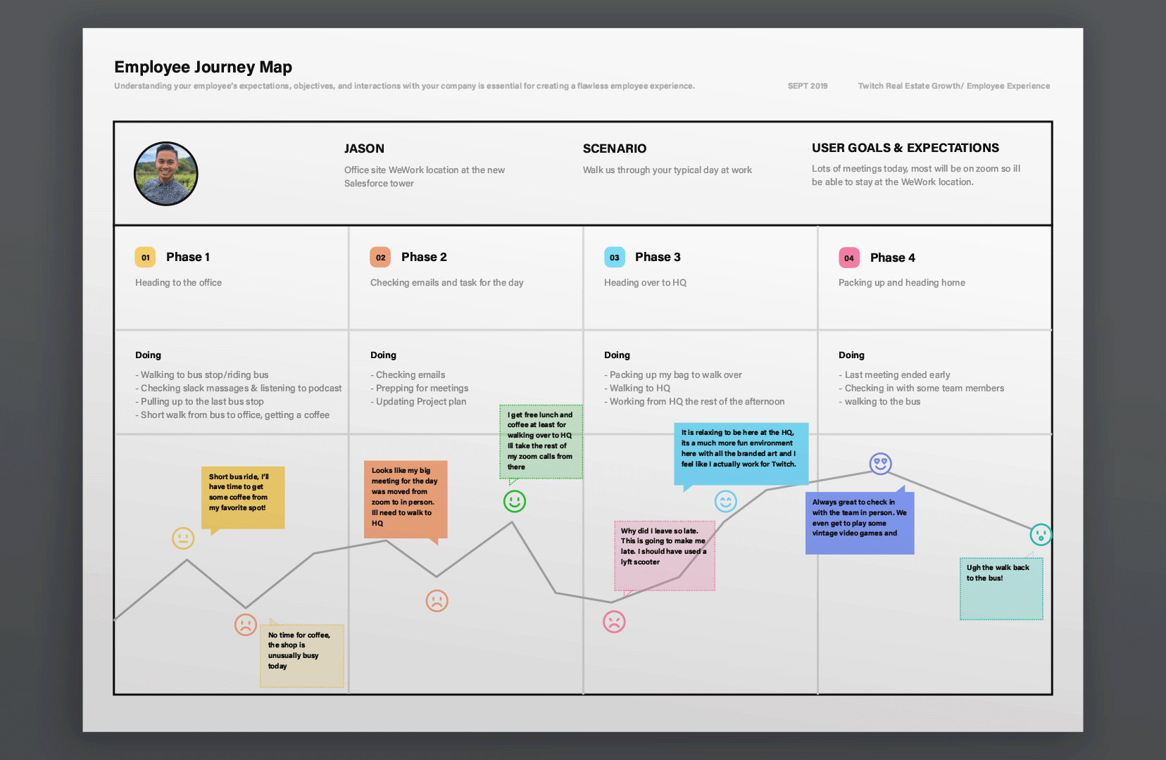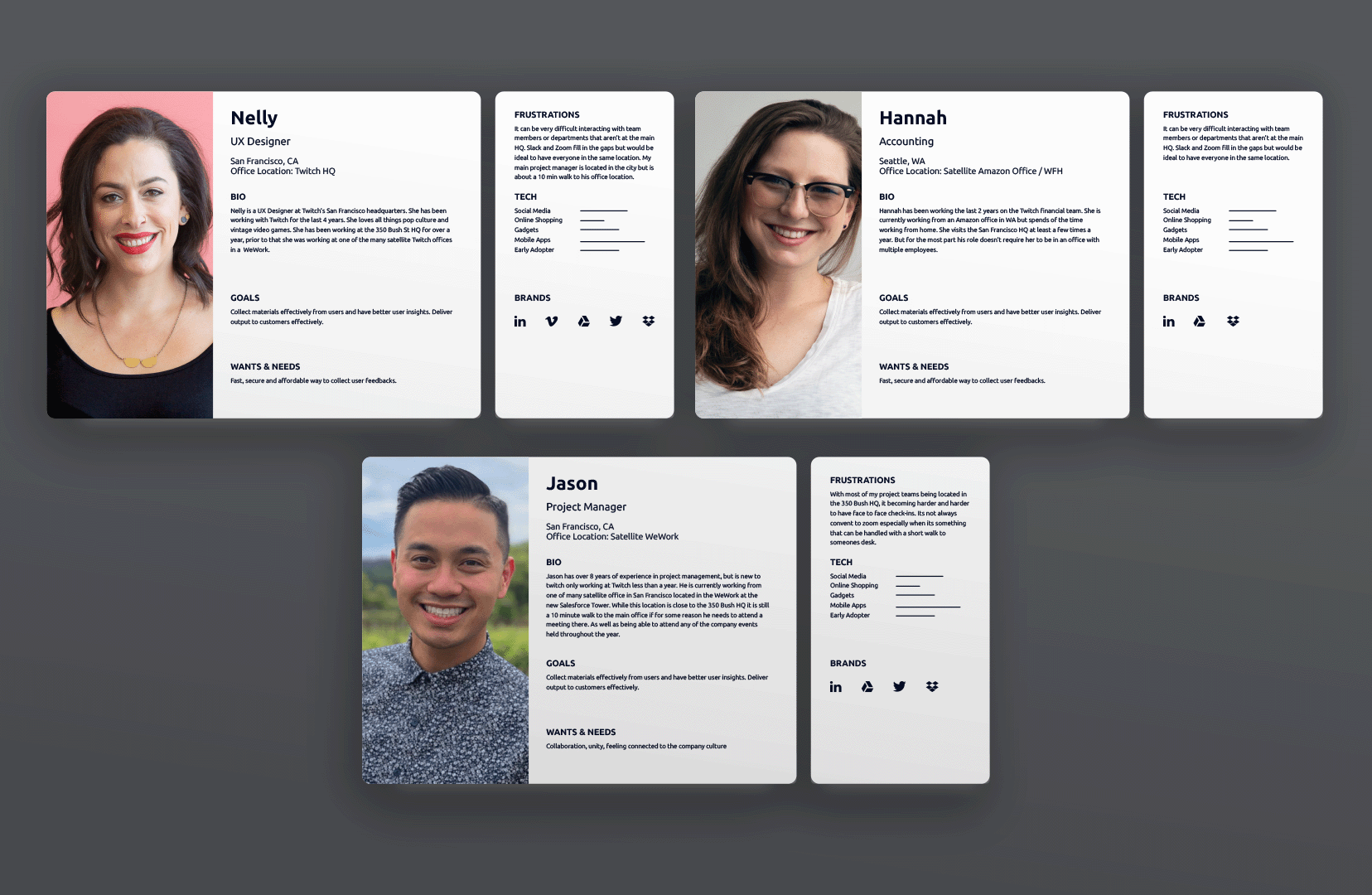 Our research team (myself and two others) was tasked with developing insights and recommendations to help Twitch remain flexible during this expansion while ensuring a consistent, inclusive employee experience across both Twitch-owned offices and satellite coworking locations.